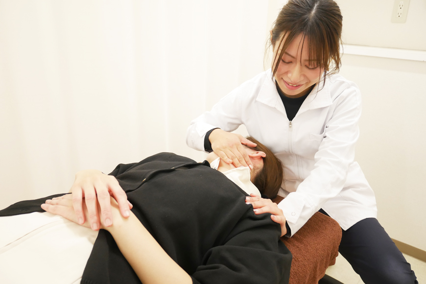 まずは体の土台である骨盤や背骨、肩甲骨、首周り、全身の歪みを改善するために「骨格・骨盤矯正」を行います。