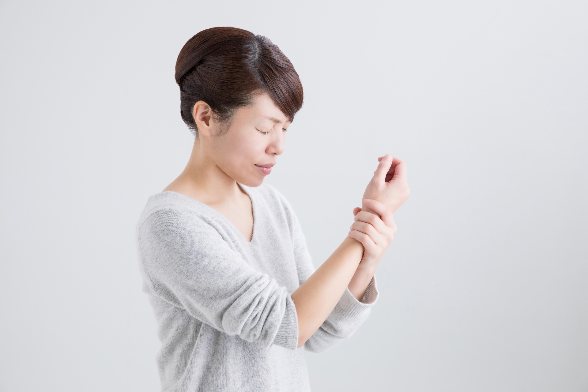 また、転倒で手を衝いた際に三角線維軟骨部分に大きな外力が加わり、一回の外力により発生することもあり、加齢により軟骨や靭帯に変性が起こり痛みを発生することもあります。